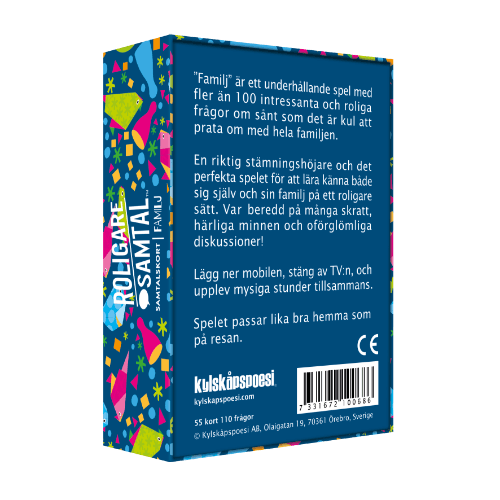 ”Familj” är ett underhållande spel med fler än 100 intressanta och roliga frågor om sånt som det är kul att prata om med hela familjen.